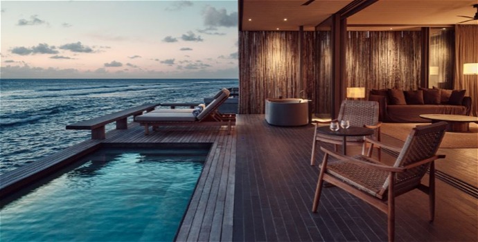 No atol de Malé, o Patina Maldives é um verdadeiro refúgio para desconectar e aproveitar a natureza intocada do destino. À beira da praia ou instaladas sobre o oceano, algumas das suas acomodações contam com vistas privilegiadas dos cenários praianos, piscinas particulares e acesso direto ao mar. O hotel ainda se destaca por promover a interação social, artística e cultural em seu conceito de hospitalidade, e tem design arrojado assinado pelo arquiteto brasileiro Marcio Kogan.