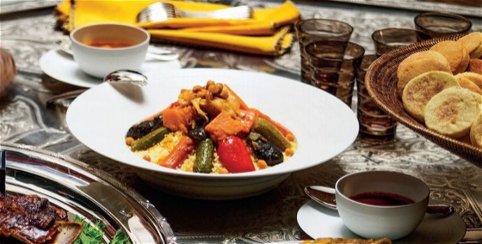 Não há maneira mais simples de se descrever o cuscuz marroquino. É um prato à base de bolinhas de semolina (farinha de trigo duro), que, expostas ao vapor d’água, incham e ganham uma textura leve e delicada. O sabor vem do guisado que se serve sobre o cuscuz. Pode ser de legumes, de carne ou dos dois. O cuscuz foi criado séculos atrás pelos berberes, povo nômade do atual Marrocos, e de lá ganhou o mundo. Primeiro, o prato chegou ao Oriente Médio, levado pelos muçulmanos na época da conquista do norte da África, por volta do século 10. Mais tarde, seria apresentado à Europa. O cuscuz hoje figura entre os três pratos mais adorados pelos franceses.